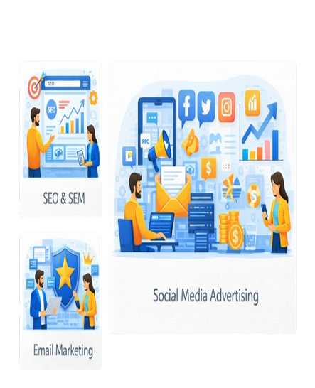 Our digital marketing services are designed to improve visibility, engagement, and conversions. We combine strategy, technology, and data to help businesses reach the right audience, optimize campaigns, and achieve measurable marketing success.